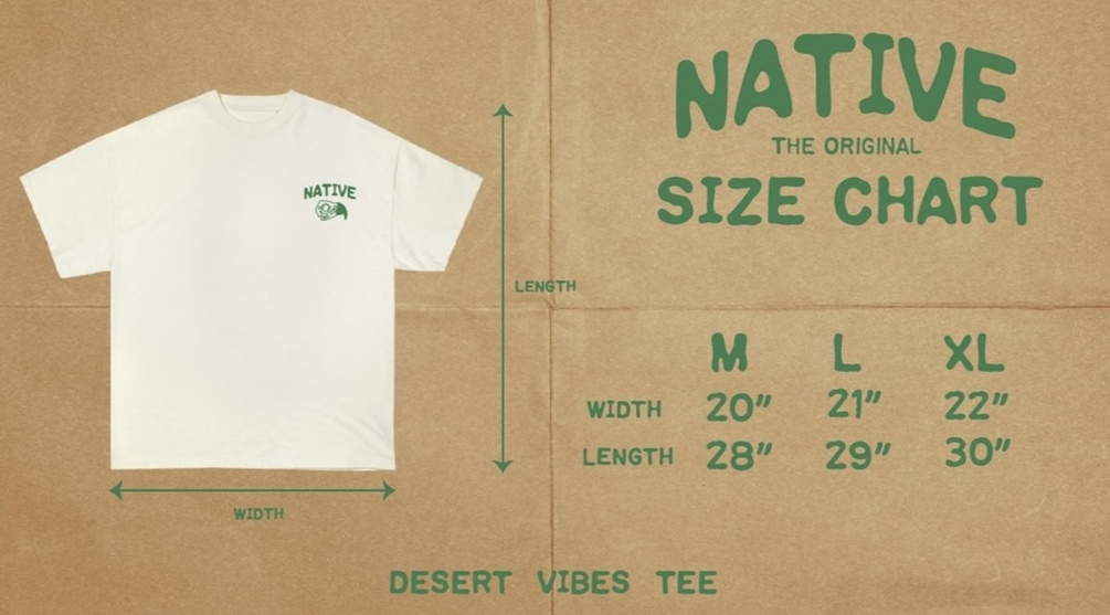 NATIVE - Desert Vibes Tee • 80% Cotton 20% Polyester • Off-white color • With hangtag sticker • Classic fit & Crewneck • Silkscreen Print • Sizes: M, L, XL